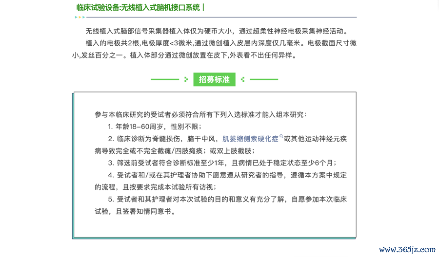 赵郑拓发给记者一份“临床进修患者招募”公告,自大正在招募因高位颈髓毁伤、脑干中风、渐冻症等导致当作瘫痪,或双上肢截肢患者。“咱们依然蚁集到了七八百东谈主的央求,会经过相等严格和严慎的筛选,挑选临床进修患者。”赵郑拓暗示。