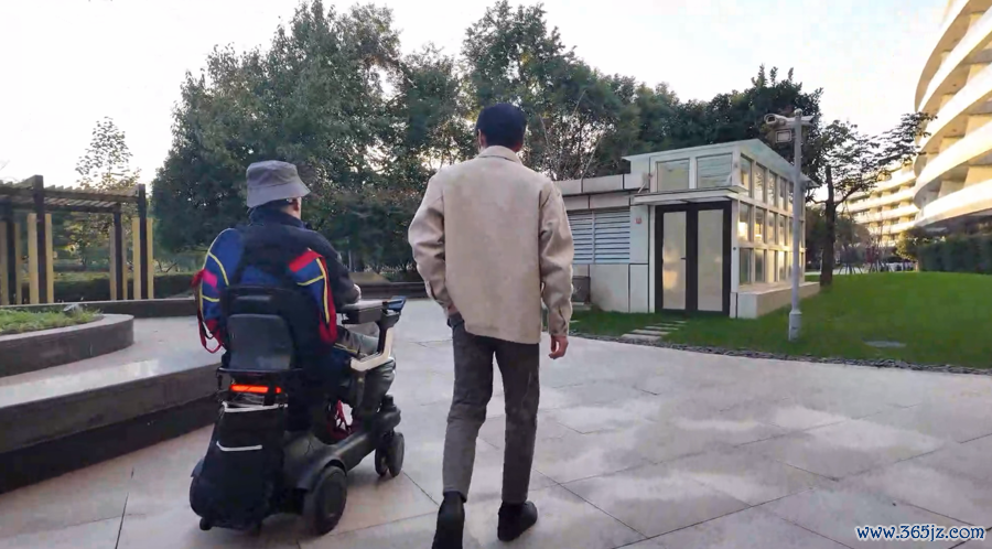 高位截瘫患者(左)通过脑智不凡中心等单元研发的脑机接口系统意念贬抑轮椅